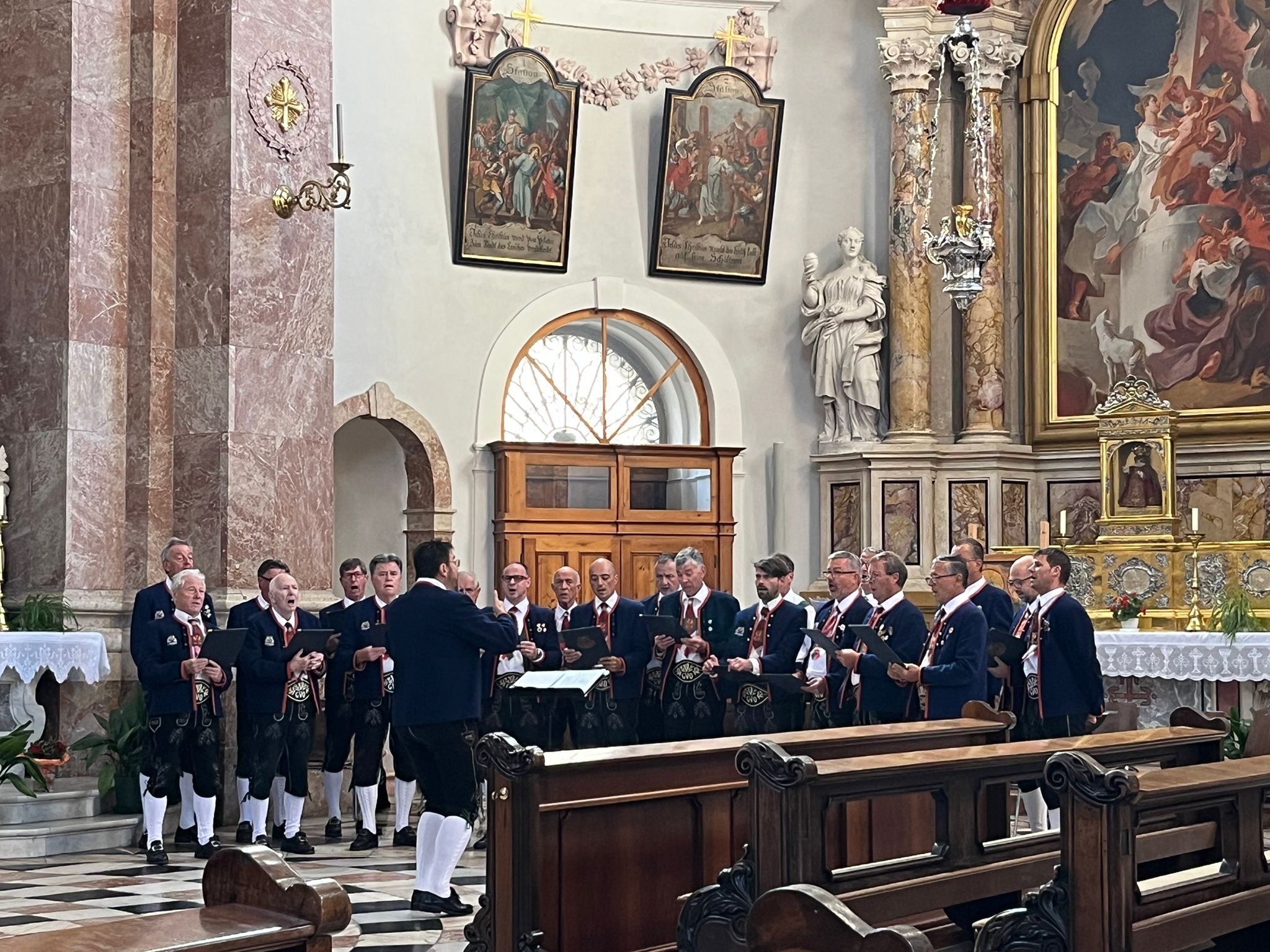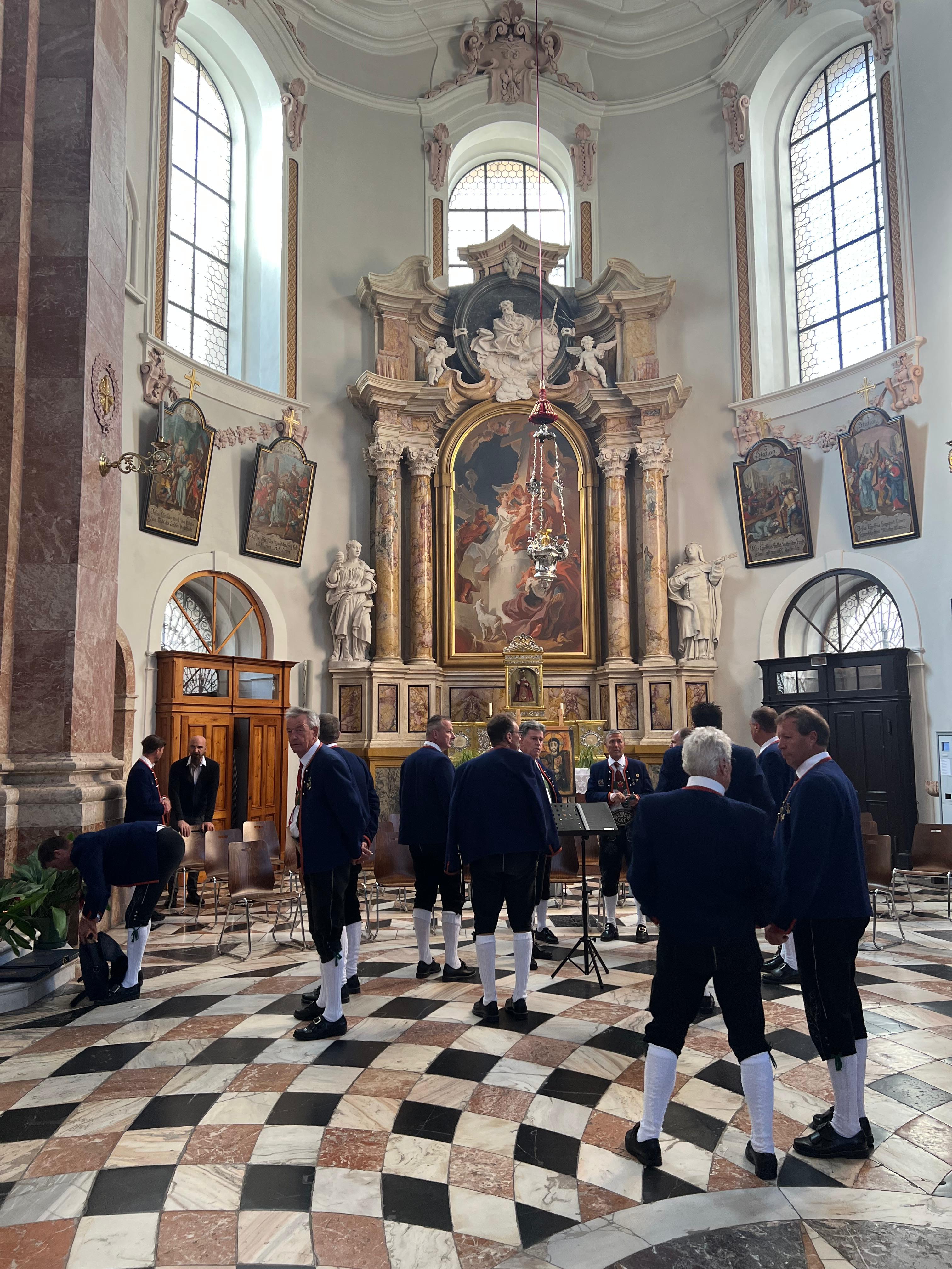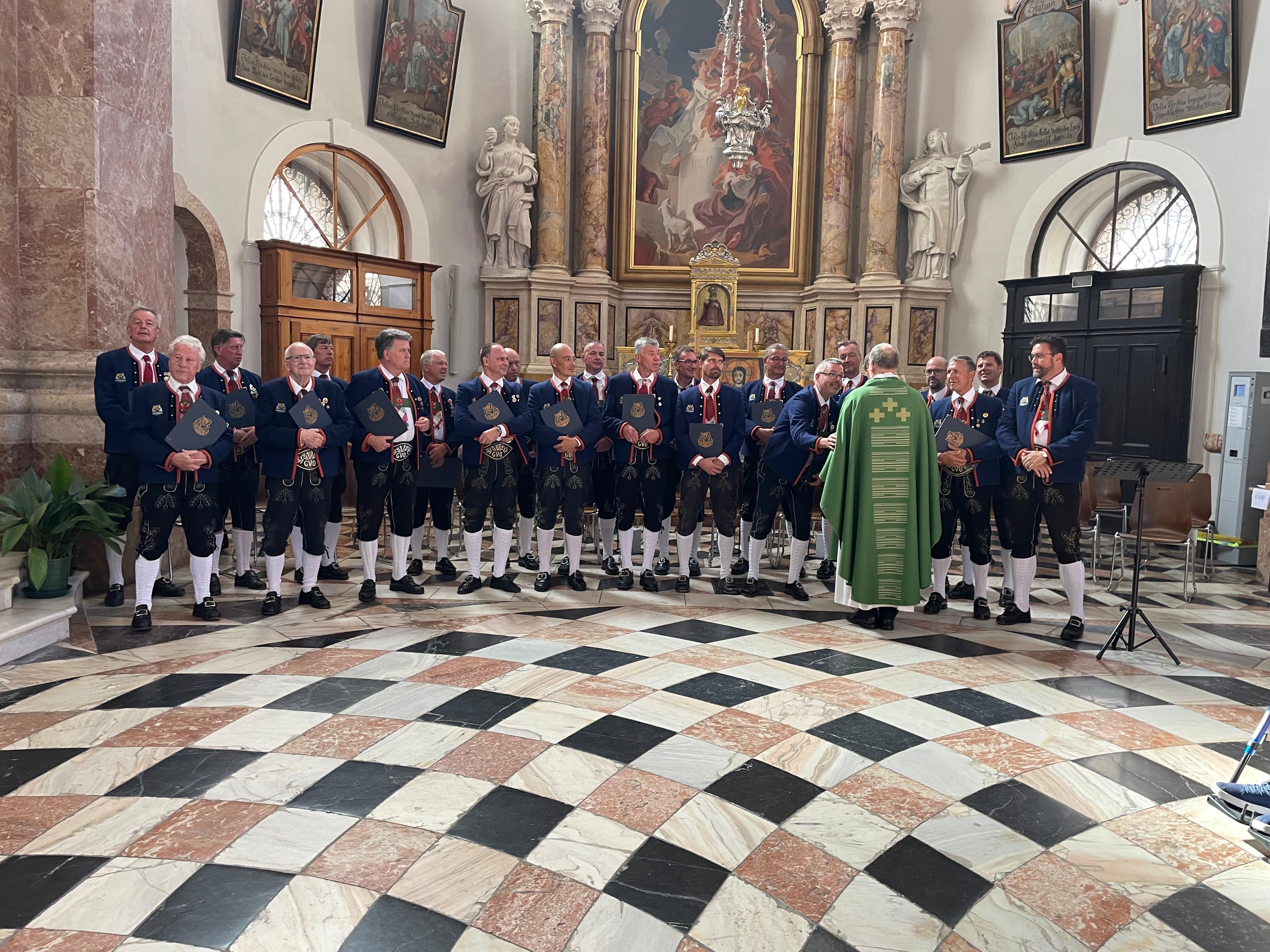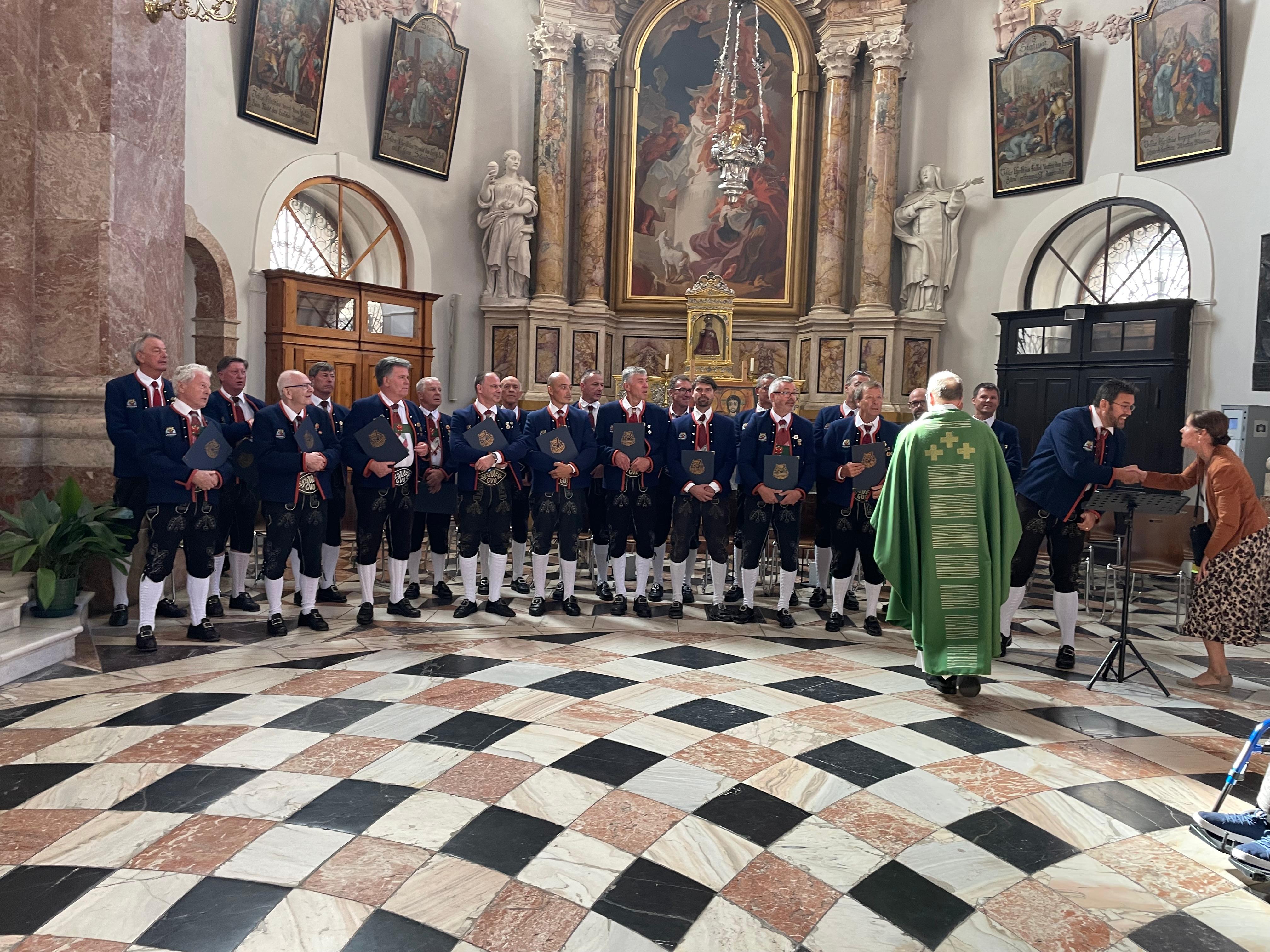 Heute durften wir im Dom St. Jakob in Innsbruck die Messe um 10:00 Uhr musikalisch mitgestalten. Der strahlende Spätsommertag verlieh der Feier zusätzlich eine besondere Note. Viele Oberperfer nahmen an der Messe teil und trugen so zu einer eindrucksvollen Gemeinschaftserfahrung bei. Nach dem Gottesdienst durften wir uns über zahlreiche anerkennende Worte freuen. Ein besonderer Dank gilt unserem Vertretungschorleiter Thomas Auer, der mit großem Engagement und Feingefühl das Beste aus uns herausgeholt hat und unserem Lorenz Heli, der diese Messfeier für uns organisiert hat.