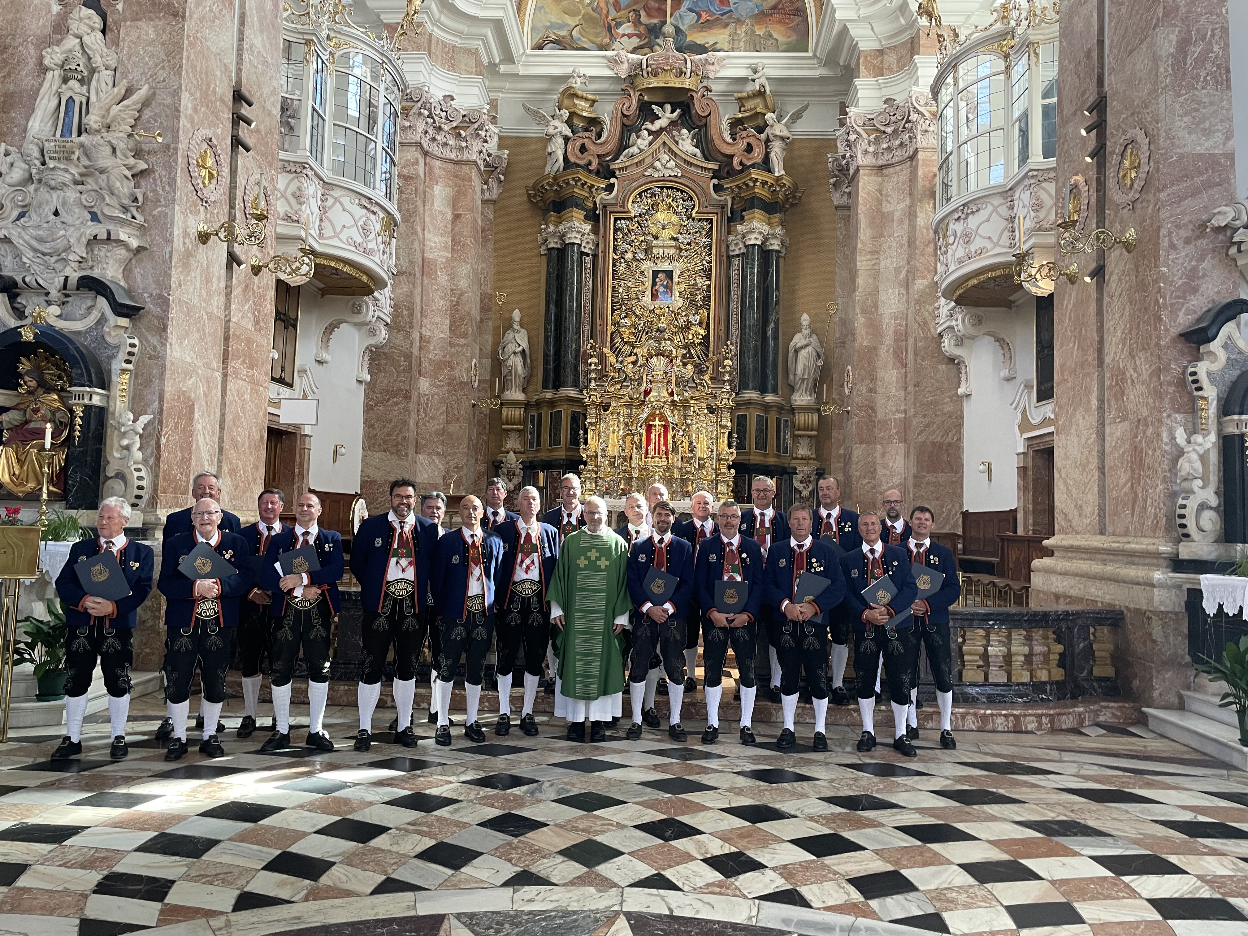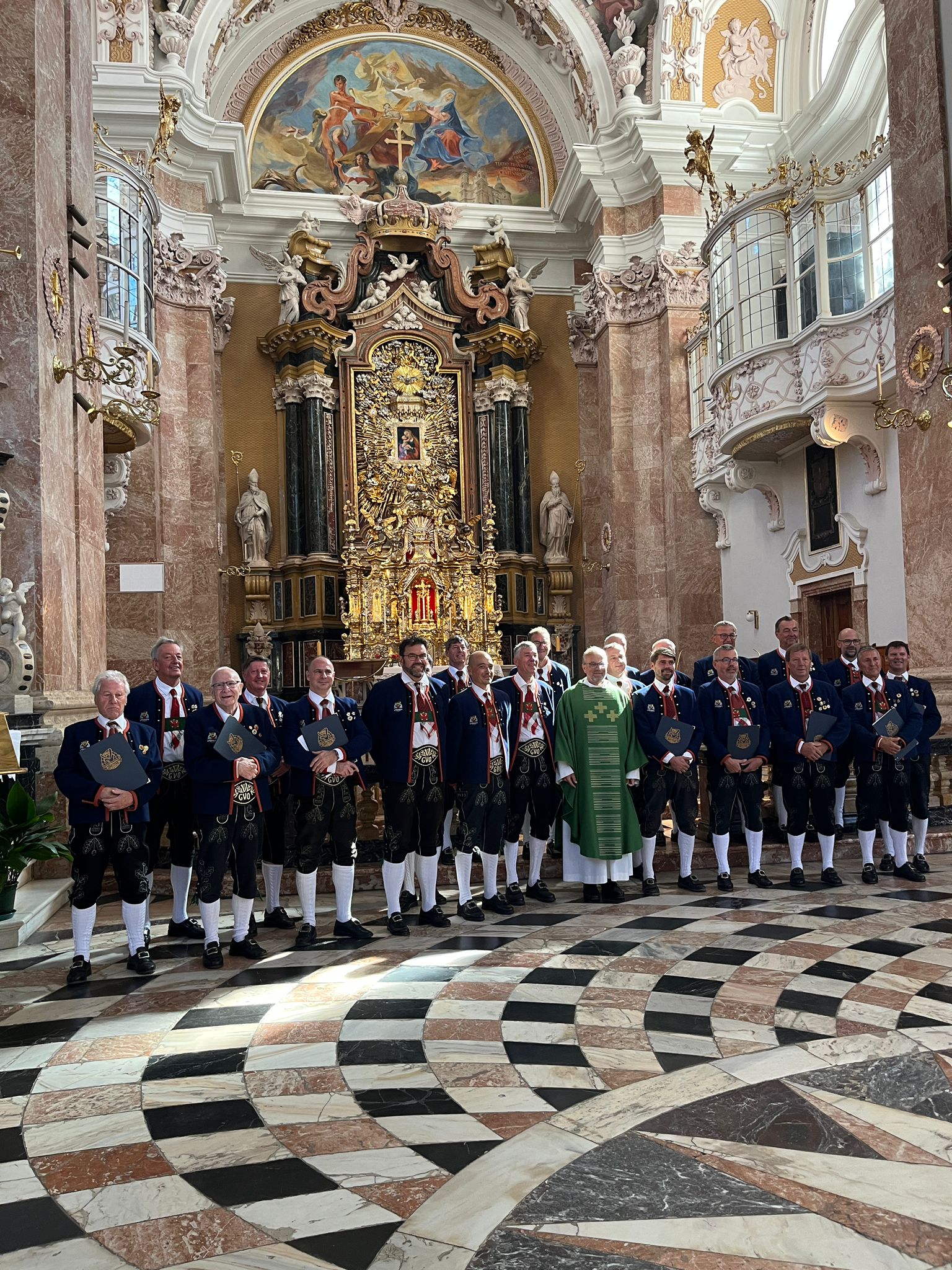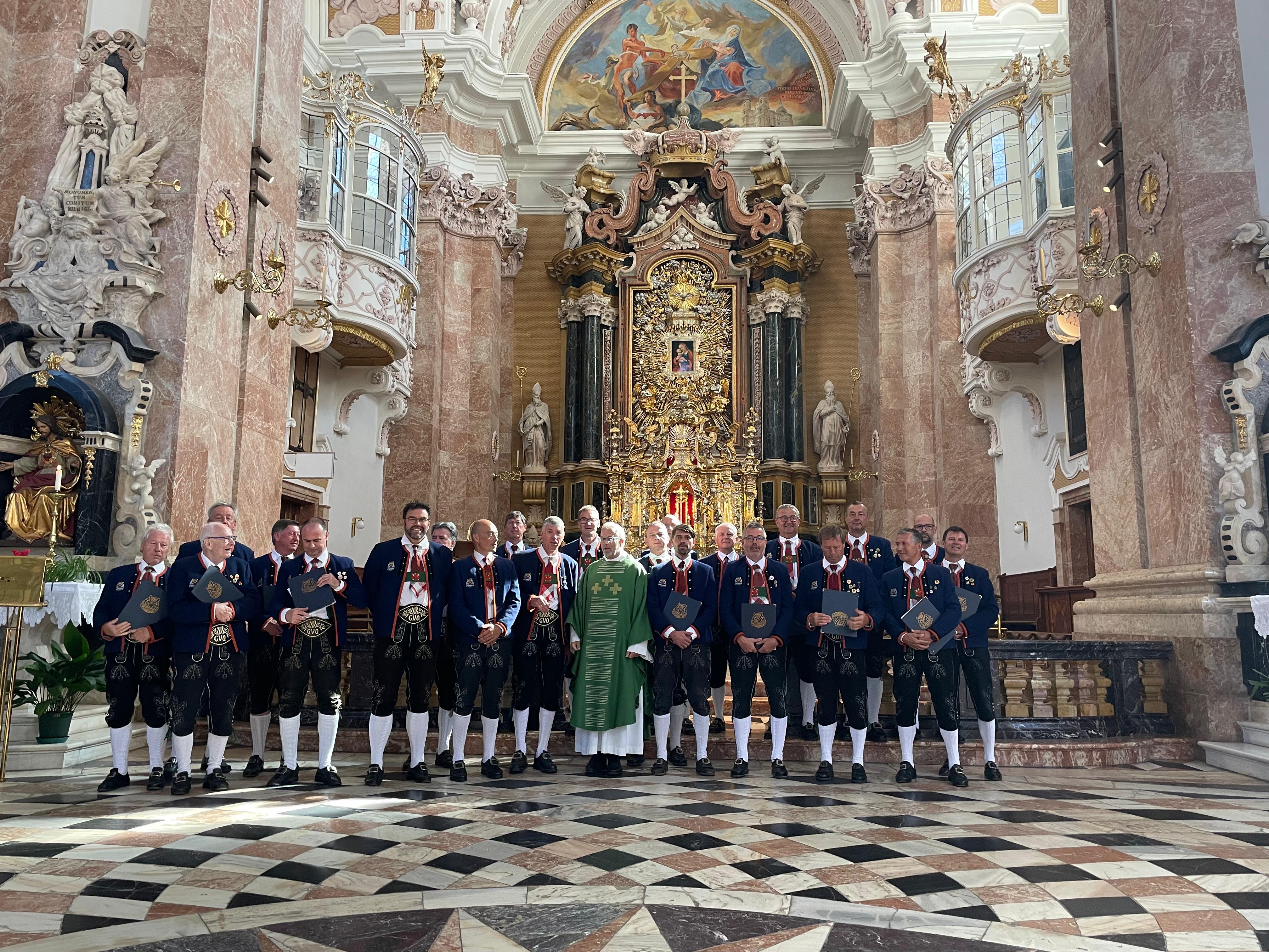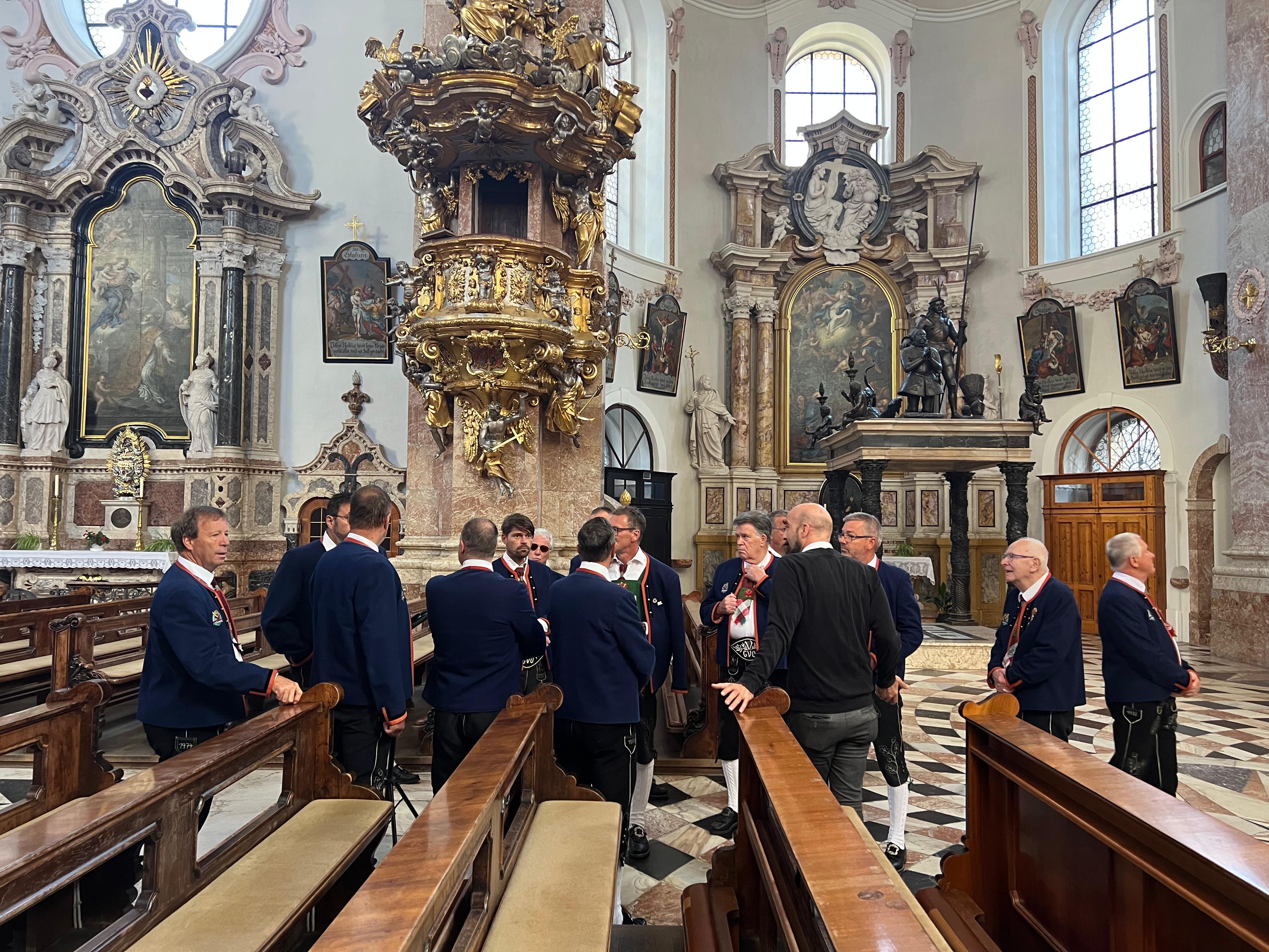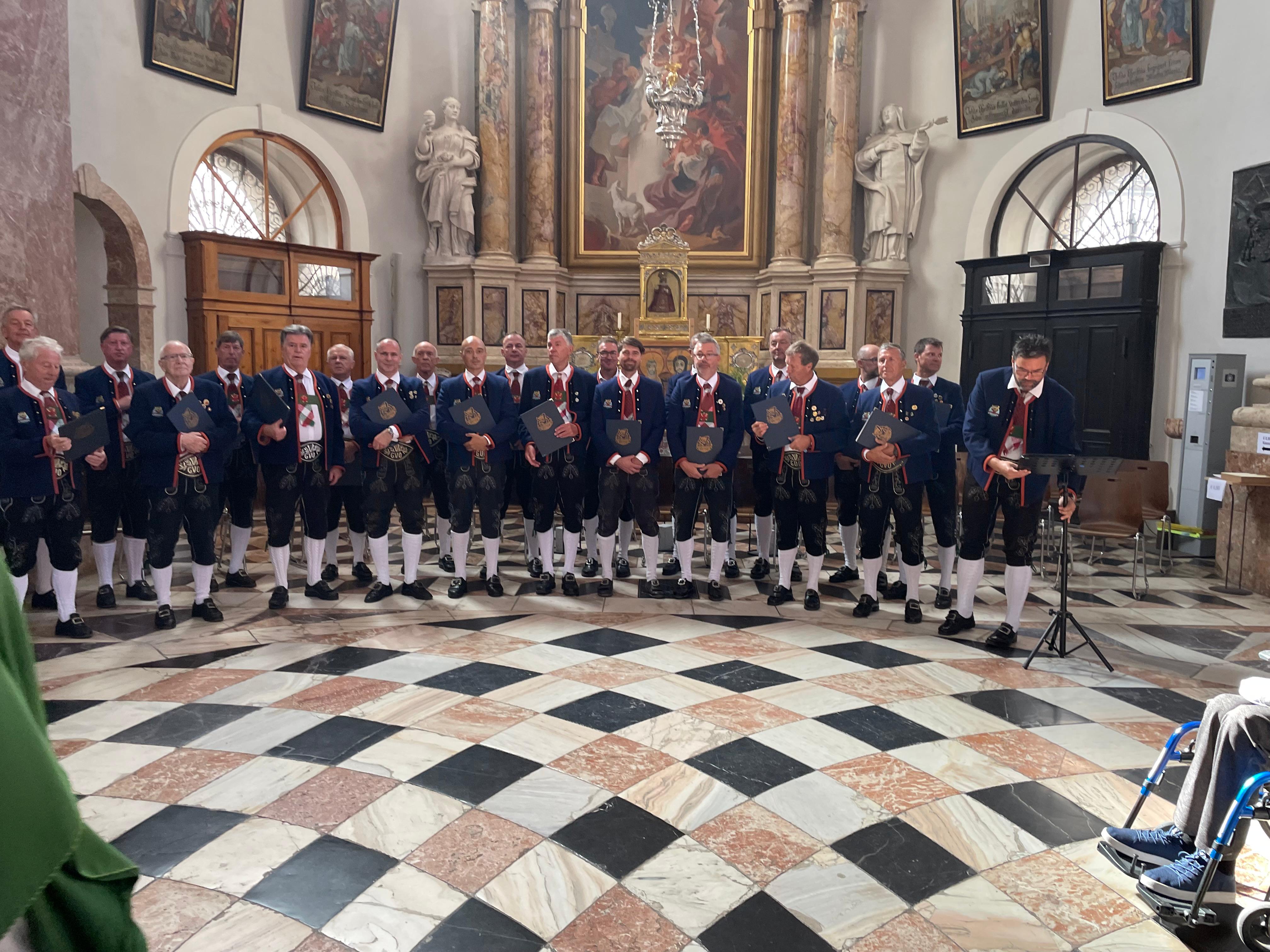 Heute durften wir im Dom St. Jakob in Innsbruck die Messe um 10:00 Uhr musikalisch mitgestalten. Der strahlende Spätsommertag verlieh der Feier zusätzlich eine besondere Note. Viele Oberperfer nahmen an der Messe teil und trugen so zu einer eindrucksvollen Gemeinschaftserfahrung bei. Nach dem Gottesdienst durften wir uns über zahlreiche anerkennende Worte freuen. Ein besonderer Dank gilt unserem Vertretungschorleiter Thomas Auer, der mit großem Engagement und Feingefühl das Beste aus uns herausgeholt hat und unserem Lorenz Heli, der diese Messfeier für uns organisiert hat.