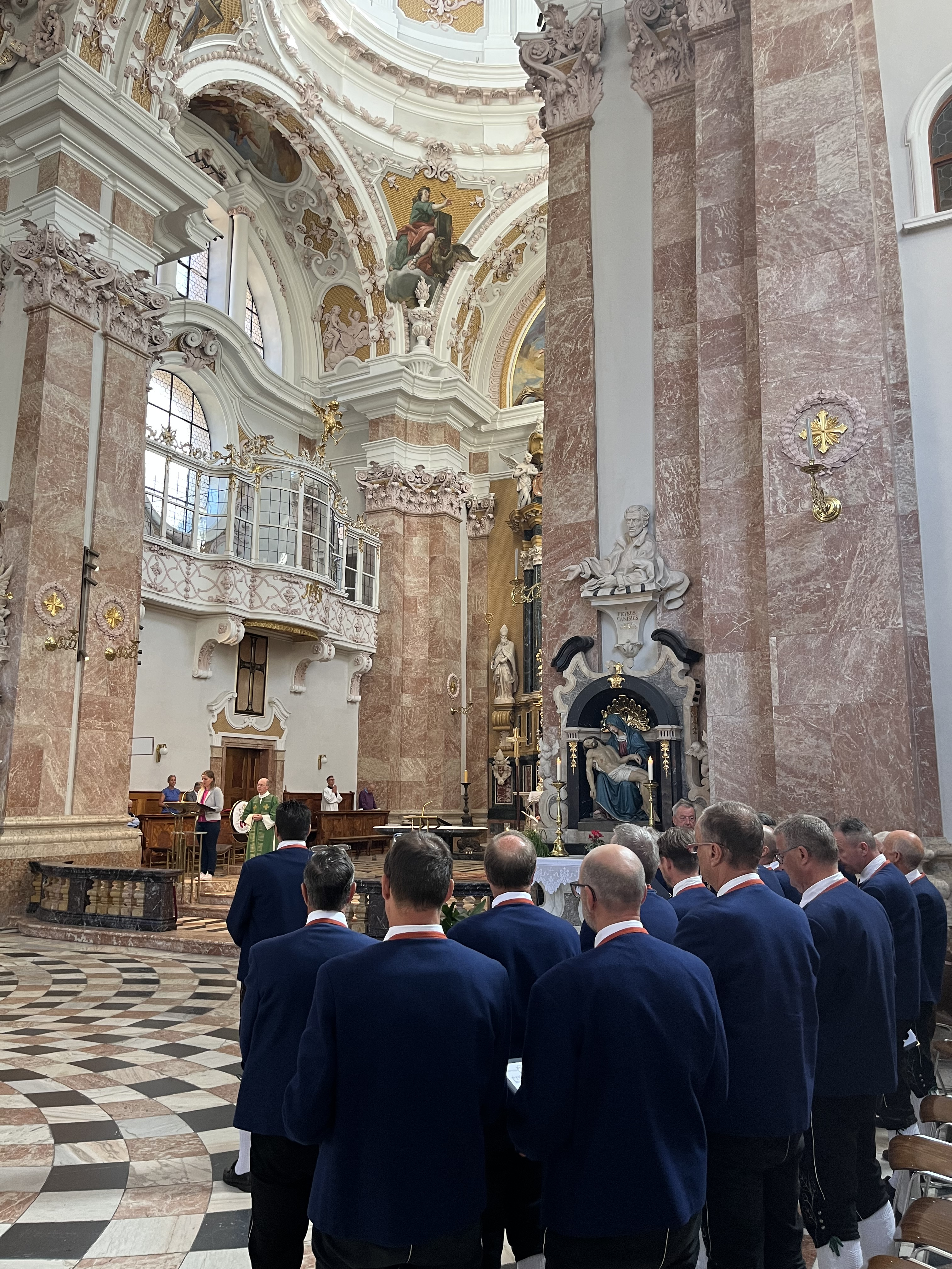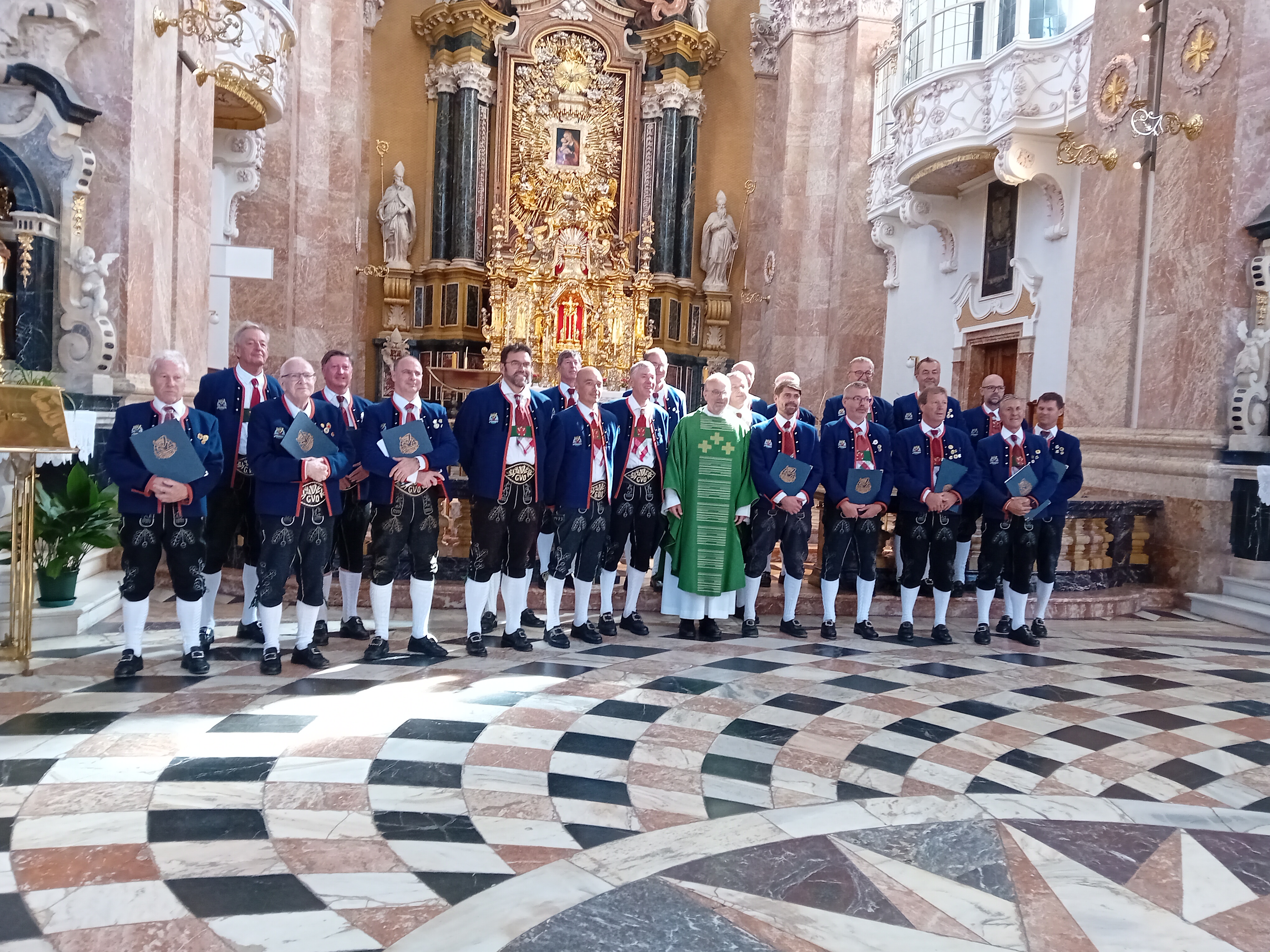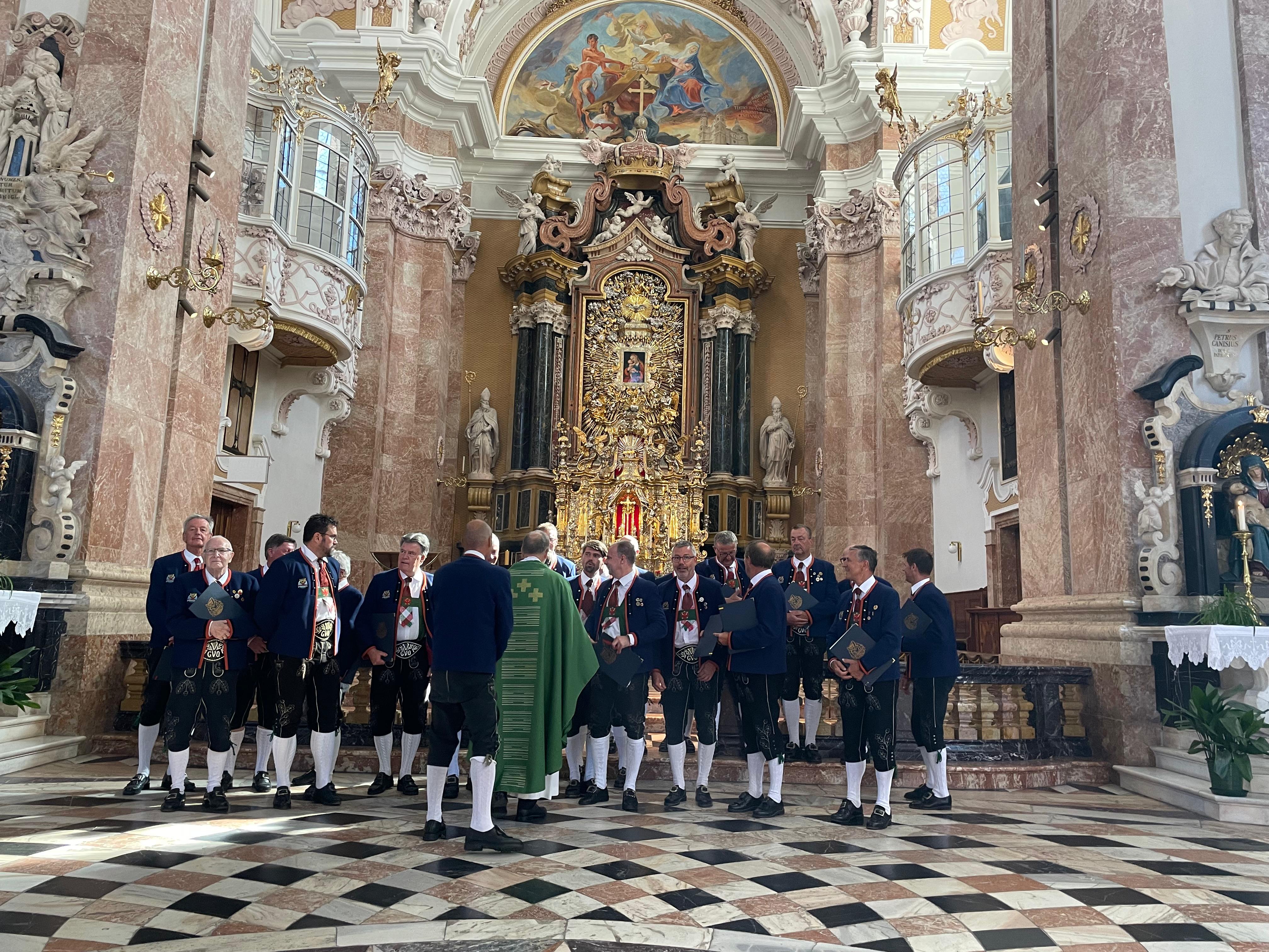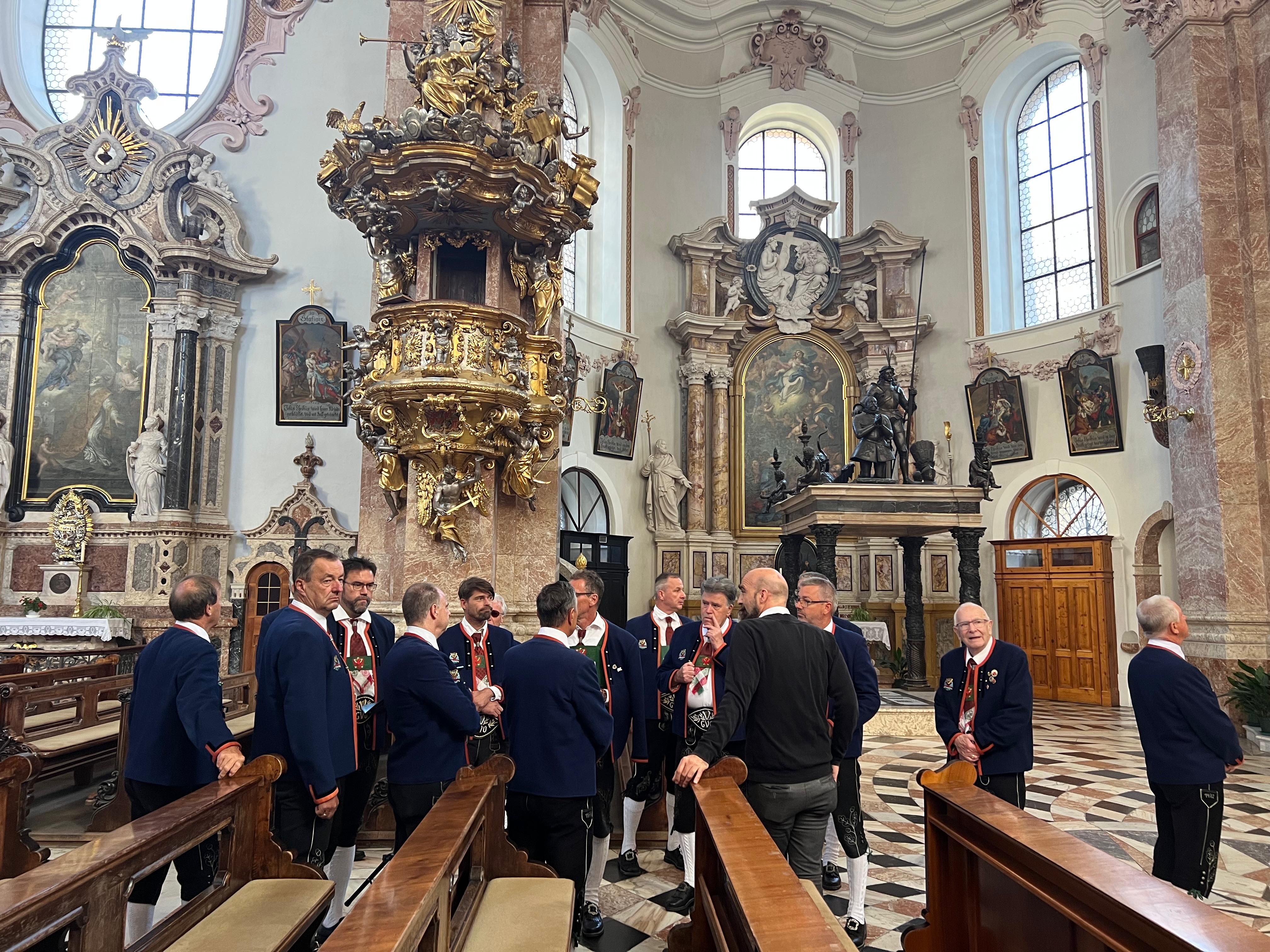 Heute durften wir im Dom St. Jakob in Innsbruck die Messe um 10:00 Uhr musikalisch mitgestalten. Der strahlende Spätsommertag verlieh der Feier zusätzlich eine besondere Note. Viele Oberperfer nahmen an der Messe teil und trugen so zu einer eindrucksvollen Gemeinschaftserfahrung bei. Nach dem Gottesdienst durften wir uns über zahlreiche anerkennende Worte freuen. Ein besonderer Dank gilt unserem Vertretungschorleiter Thomas Auer, der mit großem Engagement und Feingefühl das Beste aus uns herausgeholt hat und unserem Lorenz Heli, der diese Messfeier für uns organisiert hat.