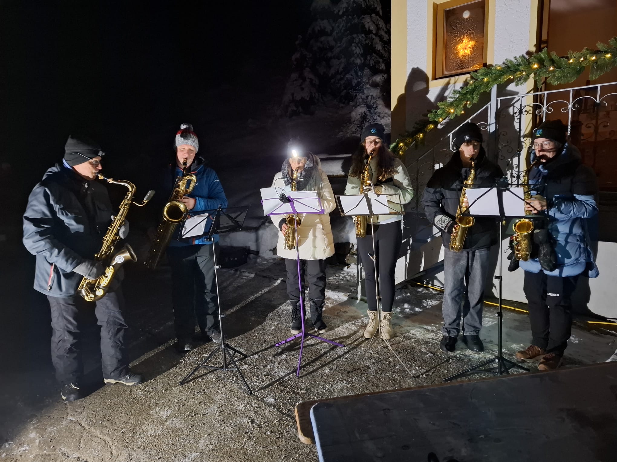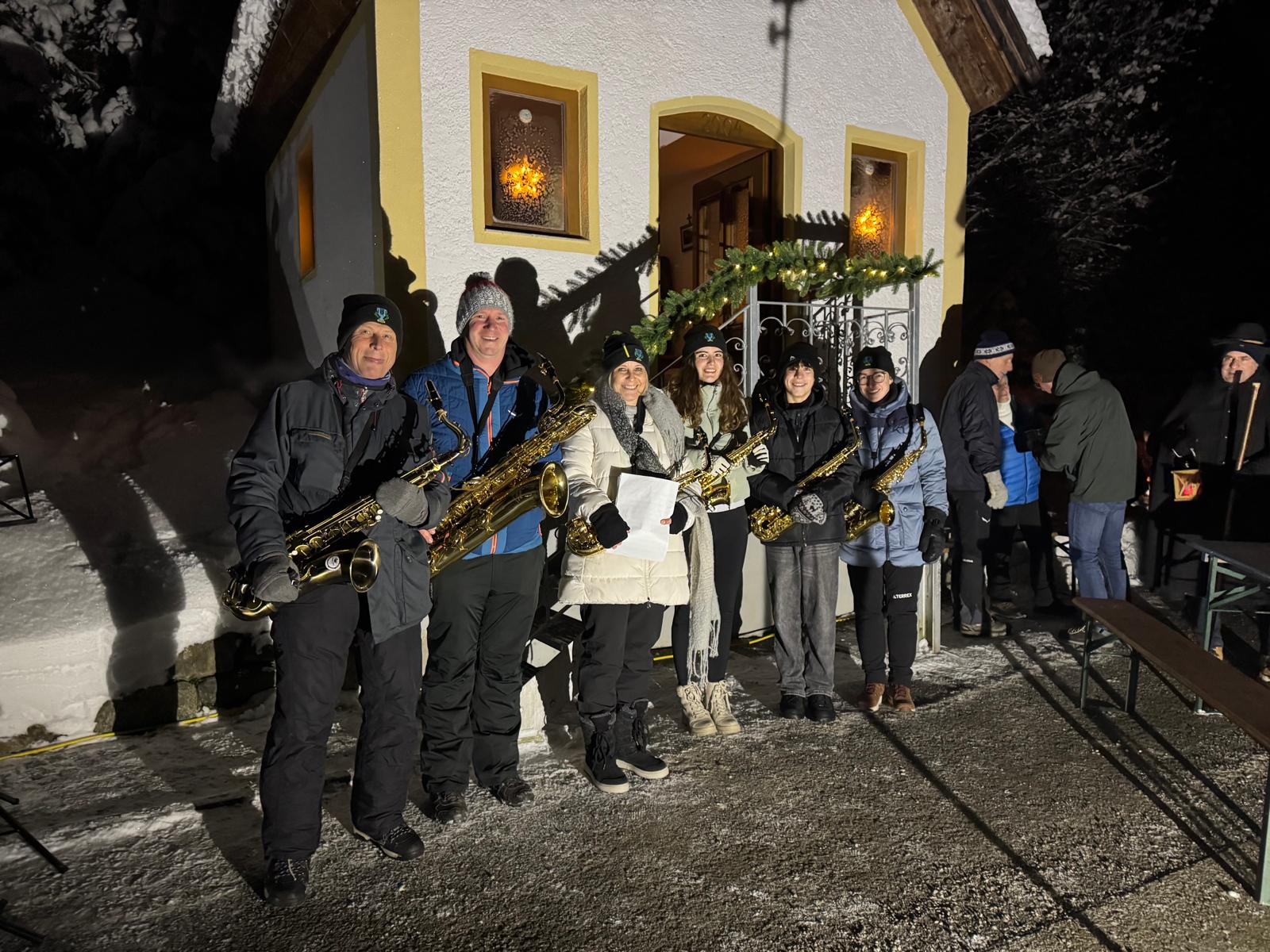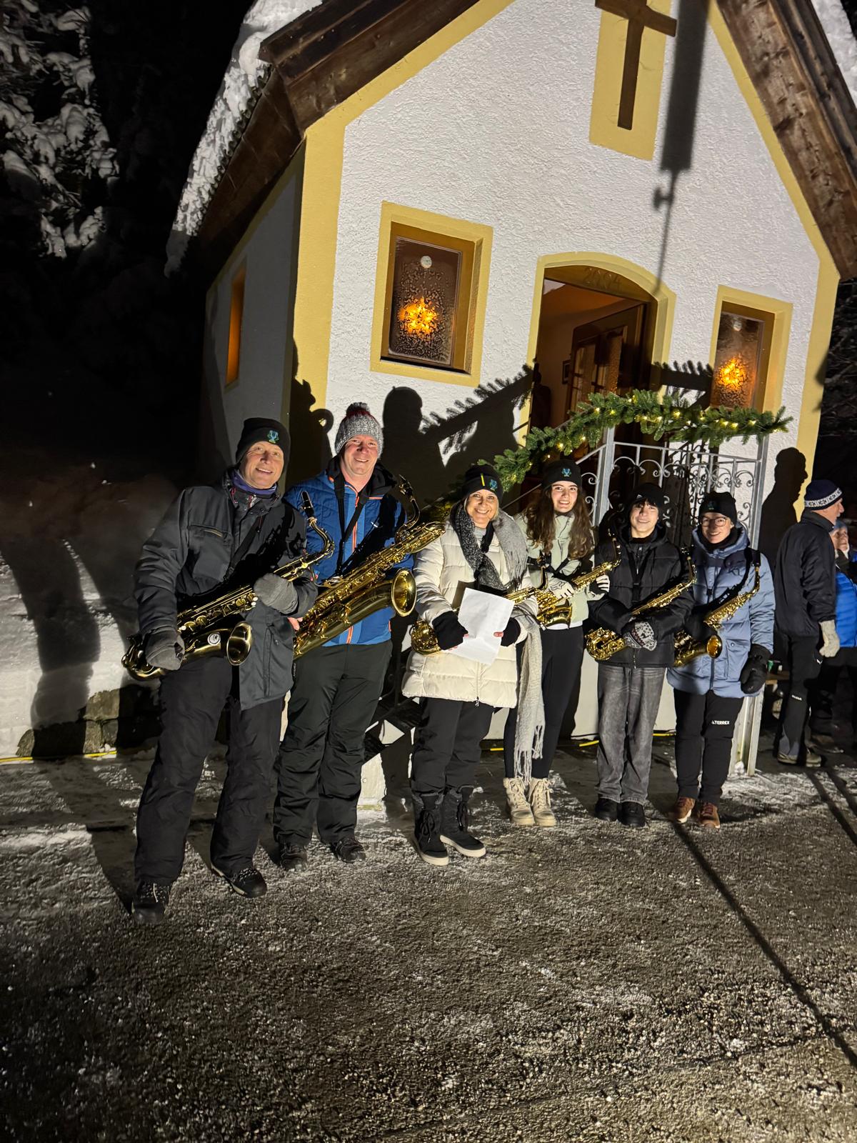 Helli bereicherte die Feier mit besinnlichen Texten, die zum Innehalten einluden und der Veranstaltung einen festlichen Rahmen gaben. Musikalisch begleitet wurde der Auftakt von Paulis Saxophonisten, deren stimmungsvolle Weihnachtslieder die Atmosphäre an der Kapelle vollends abrundeten.