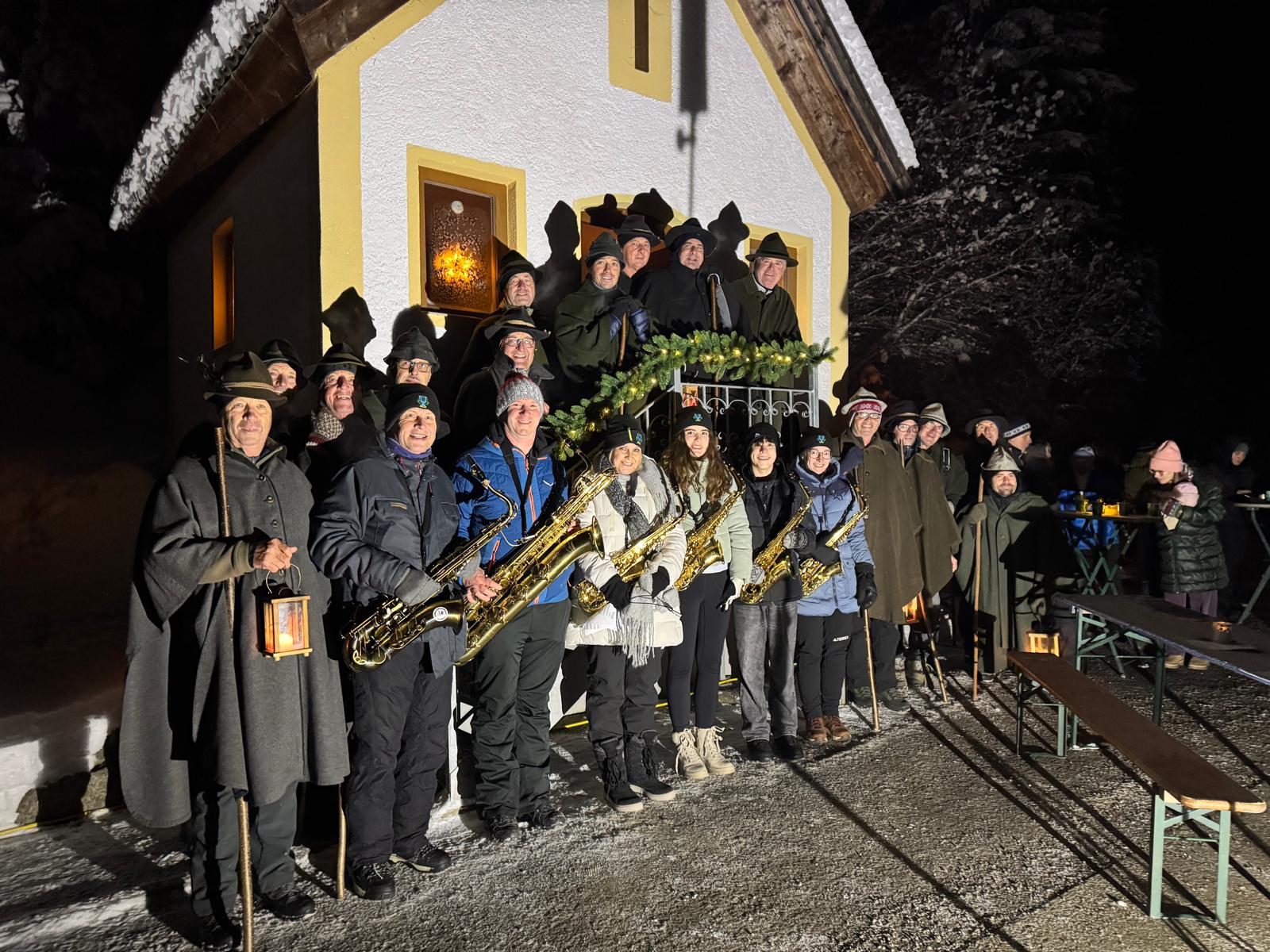 Unsere Oberperfer Anklöpfler haben bei der Tiefentalkapelle die diesjährige Klöpflzeit feierlich eröffnet. Inmitten einer verschneiten Winterlandschaft entstand eine wunderbare, beinahe märchenhafte Stimmung, die Besucherinnen und Besucher sofort in weihnachtliche Vorfreude versetzte.